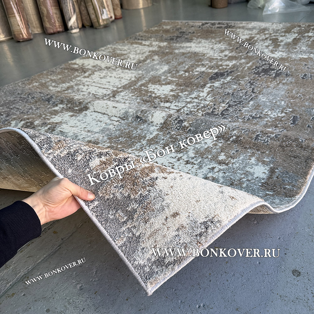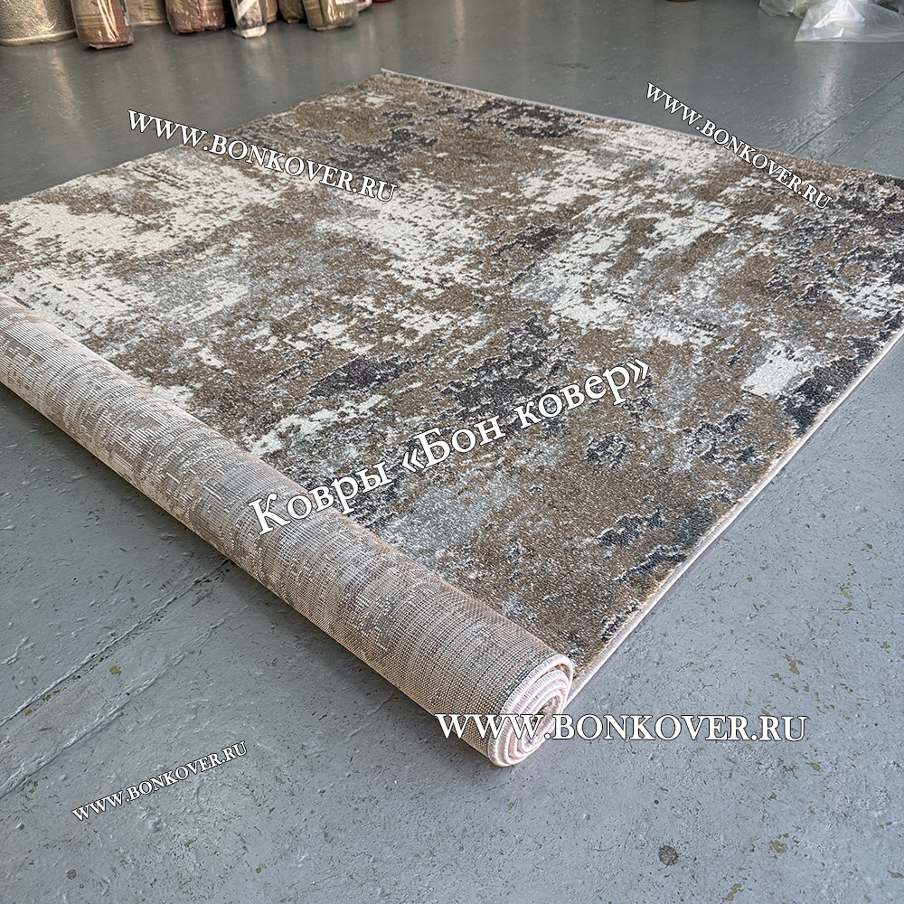 Абстрактный Ковер Серый с Коричневым Дизайн 03