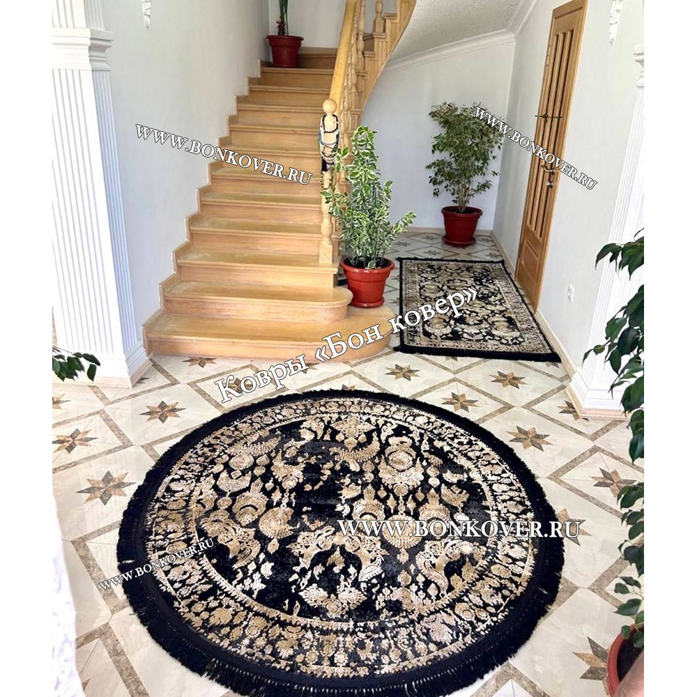 Современный Турецкий Ковер Дизайн 30665 Черный с Золотым Круг станет идеальным дополнением интерьера, оформленного в современном или классическом стиле. Мягкое, но прочное, ковровое покрытие обеспечивает тепло- и шумоизоляцию, отличается длительным периодом эксплуатации, пожаробезопасностью, экологичностью и высокой износостойкостью, является отличным противодействием от повышенной влажности в помещении и утеплителем для холодного пола. Благодаря качеству материалов, ковер не деформируется, сохраняет форму под тяжестью предметов мебели. За его поверхностью легко ухаживать.